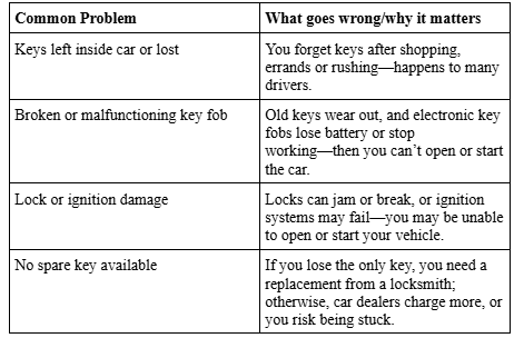 “Data from a recent breakdown-call analysis shows nearly 62% of key-related breakdowns happen because drivers accidentally lock their keys inside their car, making it one of the most common reasons people need immediate automotive locksmith help.” (Source)